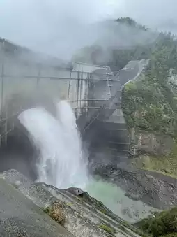 Arriving at Lake Kurobe, the rain continued to fall, but that didn't deter me from heading to Kurobe Dam. The view of the lake was magnificent. Walking to Kurobe Dam, the imposing dam discharge and the flowing water beside it reminded me of the phrase "the highest good is like water" I'd learned in textbooks. Despite the drizzle, it added a touch of literary flair.