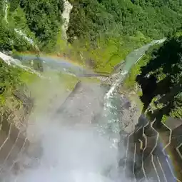 I began my journey early in the morning, around 6 or 7 AM, from Ogizawa. The route was bustling with tourists. After transferring, I first arrived at the "Kurobe Dam." The dam's structure was impressively massive, and during the "tourist water discharge" (not an official flood release), the roaring sound of water was accompanied by a surprise sight of a rainbow refracted in the light! Walking from the top of the dam into the mountains and transferring to another mode of transportation, I reached "Daikanbo." From the observation deck, I could take in the breathtaking view of the Tateyama mountain range and Kurobe Lake. At that moment, my camera serendipitously captured a soaring eagle 🦅!