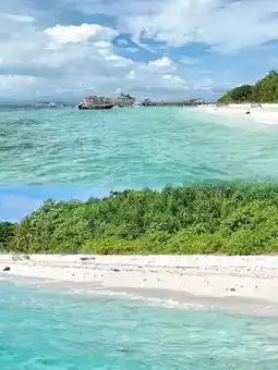 - Mataking Island: In the morning when you land, the receded tide reveals a golden sandbar connecting two small islands like a ribbon. Walking barefoot on the fine soft sand, the seawater barely covers your ankles, and the waves in the distance shift from blue to turquoise. Every photo looks like "a person in a painting."