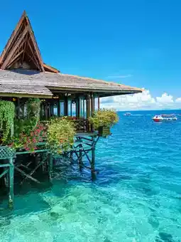 ✨Mabul Island: Mainly for photography. The water villas and surrounding flowers are great for photos📷 There are also Bajau people selling coconuts 🥥 on the water, so you can capture some cultural shots.