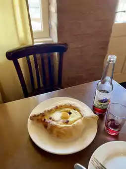 I ordered hachapuri, a traditional Georgian cheese bread.