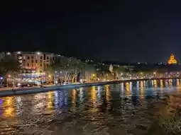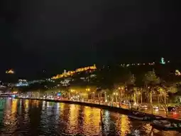 #summervacay Tbilisi at night? Total vibe. The whole city just lights up literally. The bridges, the churches, the fortress up on the hill, they all glow in this soft golden light that makes everything look extra dreamy. I started the evening walking along the river, and it felt like a chill little movie scene.