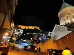 There’s something super cool about wandering the old town at night. The streets are quieter, but not dead. Restaurants are buzzing, street music pops up here and there, and the smell of grilled stuff + wine is everywhere. I ended up in a rooftop bar with an unreal view of the Narikala Fortress, 10/10 would recommend.