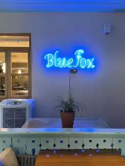 A cafe called BLUEFOX is very stylish, and we had tea on the terrace.