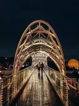 Next, stroll along the Bridge of Peace, a state-of-the-art glass arch bridge spanning the Kura River, connecting the Old Town with the New Town. It's a popular photo spot at night, its LED lights twinkling like a futuristic bridge.