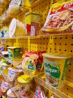 Not just any boring shelf of cup noodles… this is a full-blown Instagram-worthy noodle wall featuring a global spread of instant noodles: Korean ramyeon, Japanese classics, spicy Thai ones, even quirky flavours you’ve probably never seen before. It’s literally made for your camera roll 📷💥 and your snack stash at the same time.