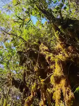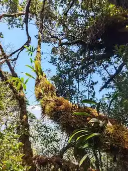 Moss carpets the trees, ferns line the trail, and orchids thrive in the damp air. Deeper into the forest, the surroundings transform completely. Twisted branches arch above, shrouded in fog, creating the feeling of walking through a magical forest. The silence here is profound, broken only by rustling leaves, adding to the sense of wonder.