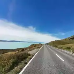 Day 16: 🌞 On the last morning of our New Zealand trip, we cleared out the fridge and prepared various condiments for the campsite kitchen to be of use to other travelers staying overnight. Afterward, we waved goodbye to Mount Cook before heading down Highway 8. The view on our left was Lake Pukaki, whose water color was so beautiful it was hard to describe its perfection. The atmosphere and the scenery were truly perfect.