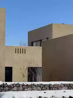 Rammed earth walls and wooden fences create a raw, natural aesthetic. Each room feels like a scene from *Little Forest*: hand-woven tapestries, vintage wooden furniture, and floor-to-ceiling windows framing a panoramic view of the Tianshan Mountains. Wake up to the sound of birdsong. Open the curtains to a magical composition of greenery and snow-capped mountains.