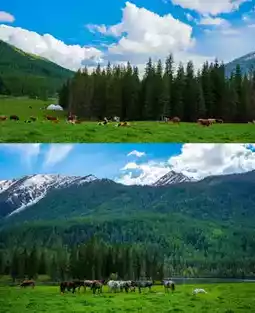 〓 Highlights: In July, millions of acres of rapeseed flowers bloom, and the daily "Heavenly Horse Bathing in the River" show (herds of horses splashing and galloping) is a must-see!