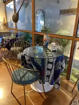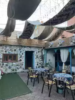 Unlike typical dessert shops, stepping inside reveals a high arched blue dome, colorful lighting, Uyghur-patterned tablecloths, and carved railings. The walls are adorned with handcrafted hats, woven fabrics, copper pots, and ethnic musical instruments, exuding a strong Central Asian vibe. Every detail feels like walking into a Uyghur home.