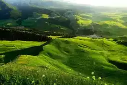 Drive for 1 hour to reach Kalajun, where the autumn three-dimensional grassland looks like a spilled palette. From the Falcon Platform, overlook the canyon sea of clouds, and the winding sunset dyes the river golden. Ride horses through the folds of the human-shaped grassland; herders say these are the "curves of the earth." Stay overnight in a yurt, listening to the winterbula lute while waiting for the Milky Way to rise. When a shooting star crosses the snowy mountain, even your breath pauses for a moment.