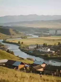 Walk through the streets of Tekes Bagua City, where golden wheat waves sway in the wind, and every street is a natural photo frame