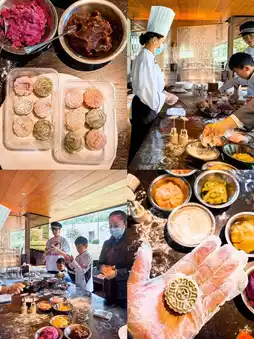 The hotel has a blessing and lantern-releasing ceremony every night at 8:30 pm, with a champagne tower and snacks. They also offered a mooncake-making activity during the season. The rice fields near the hotel are all lush green, no less than Xizhou. The hotel provides mountain bikes, and we also ate rice field fish at a local's home. In addition, the hotel's singing bowl course is also very healing.