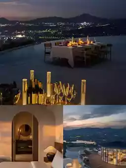 Cliff Hot Spring Rooms: Cantilevered terrace with cypress wood soaking pool, morning baths offer views of sea clouds drifting through valleys