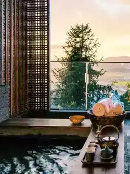 Hidden in the Gaoligong Mountains, Bodu Hot Spring Inn enjoys a secluded mid-mountain retreat. All 33 unique rooms offer excellent views, overlooking the magnificent volcano group and the ancient city scenery. We especially recommend the Huayu Qinfeng Suite, a 100-square-meter space with a double-bedroom design, featuring a large terrace and private hot spring bath, perfect for family enjoyment.