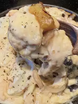 The cream gratin is filled with chicken, sweet potato, onion, and mushrooms! The sweet potato in particular was as sweet as a dessert, with a beautiful honey color! 🍯