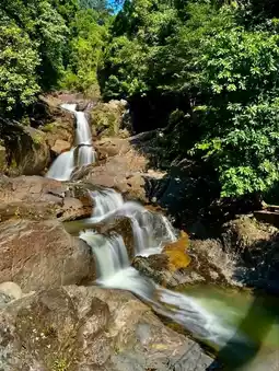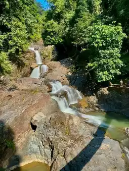 #holidayitinerary Exploring Air Terjun Lasir in Kenyir, Terengganu, was such an amazing outdoor adventure. The journey itself was exciting, as you usually need to take a boat ride across Kenyir Lake before reaching the waterfall, which already sets the mood for something special. Surrounded by lush rainforest, the waterfall cascades beautifully over giant rocks, creating natural pools perfect for swimming or just dipping your feet in.