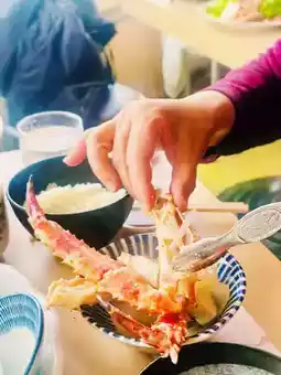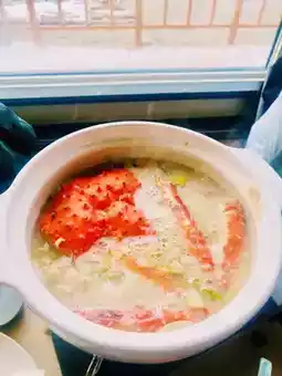 The star dish of lunch is undoubtedly the cod crab. The meat of the cod crab is sweet and fresh. It can be eaten as sashimi or put in hot pot. The vegetables absorbed the freshness of the crab, making you unable to stop eating.
