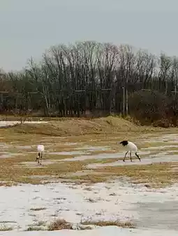 A few wild red-crowned cranes were seen foraging in the distance. The road to the viewing area is muddy, so you may need to be careful not to get your shoes and pants dirty.