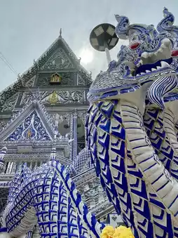 This temple boasts a unique feature: its blue ceramic chapel, made entirely from glazed tiles in a Sino-Thai style.