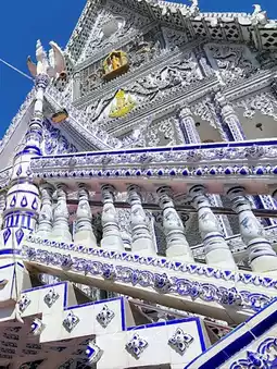 #TravelChat Let's go! I'd like to invite everyone to Chanthaburi to experience the beauty of Wat Pak Nam Khem Nu, also known as the Blue Church Temple. This unique seaside temple is a highlight of this temple. The temple's main highlight is the strikingly beautiful Blue Church. The church is constructed entirely of alternating blue and white ceramic tiles, decorated with intricate Thai patterns and fascinating depictions of the life of the Buddha. It feels like a masterpiece of meticulous craftsmanship. The church's unique and harmonious architecture makes it a popular check-in spot for tourists to take photos. Wat Pak Nam Khem Nu is located on the edge of a river that flows into the sea, creating a peaceful and shady atmosphere. It's perfect for those seeking merit-making, praying, and relaxation. Strolling through the temple grounds amidst the cool sea breeze is incredibly relaxing. The temple grounds also feature beautiful Naga statues and various sanctuaries for visitors to explore. If you're visiting Chanthaburi and are looking for a place not only beautiful but also filled with faith and tranquility, Wat Pak Nam Khem Nu is an excellent choice. It's sure to leave an unforgettable impression. Have you been there yet? Anyone who's been there before? Let's share and discuss.