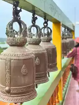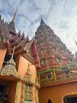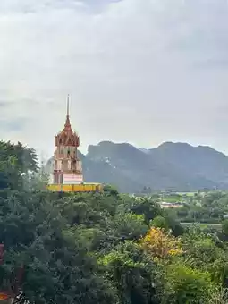 ☺️ Tiger Cave Temple, Kanchanaburi is another landmark that you can't miss when visiting Kanchanaburi. The impression starts from walking up a thousand steps (or taking a tram) to pay homage to the large golden Buddha statue in the blessing posture. The surrounding atmosphere is shady, the air is fresh, and the scenery is beautiful. Especially the view from the highest point, you can see the surrounding scenery far and wide. In addition, there is a beautiful and magnificent Chedi Kesa Kaew Maha Prasat and Tiger Cave, which is the origin of the temple's name, for you to visit. Tiger Cave Temple is not only a sacred place for worship and praying, but it is also a tourist attraction that perfectly combines the beauty of nature and architecture, making it another interesting destination.