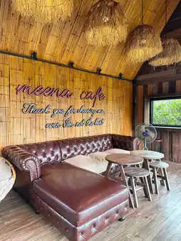 🧋 Meena Cafe is another cafe that you must not miss when visiting Kanchanaburi. The atmosphere of the shop is very good, surrounded by green rice fields and a beautiful view of Wat Tham Suea. It is suitable for relaxing, sipping coffee, enjoying the view, or taking beautiful photos. In addition to the good atmosphere, the drinks and desserts are equally delicious. Recommended menus are Oreo Mousse and Green Tea Smoothie. The service is also good, the staff is friendly, and the price is not too expensive. If anyone has the opportunity to visit Kanchanaburi, try stopping by Meena Cafe. I guarantee you will not be disappointed.