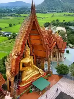Wat Tham Suea features spectacular Buddha statues, and mixed, splendid Thai-Chinese style temple complexes, as well as other religious and cultural artifacts. The large Golden Buddha image (18- meter-tall) which nestled on a hilltop. The temple complex includes caves adding an adventurous element to the visit.
