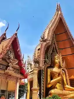 Large Buddha Image in the Blessing Posture: A prominent landmark visible from afar, this golden Buddha image sits atop a hill. Tourists often climb to pay their respects and take photos.