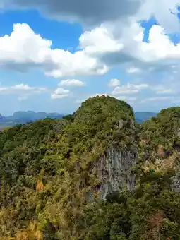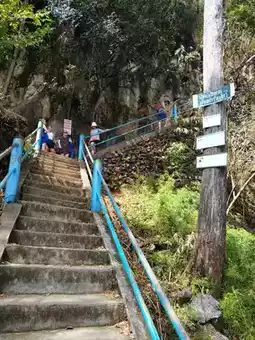 The main thing, of course, is climbing the stairs to the very top of the mountain, where there's a place of enlightenment, with a seated Buddha and a small pagoda (Khao Kaeo Ao Look Thano). The sign at the base of the mountain says there are 1,237 steps, but in reality, there are 1,260 😳, and I'll tell you why. Along the way, we came across a section where the old staircase had been replaced with a new one. The old steps were half a meter high, terrifying to look at, but the new ones were made with more humane steps, 10-15 centimeters high, and it was this replacement that changed the overall number of steps.