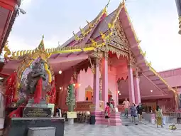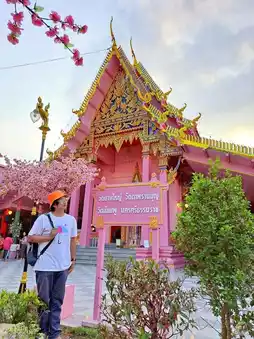 A pink temple 🛕 where locals and tourists come to worship and ask for blessings from #TaPhranBoon, a large pink statue ...