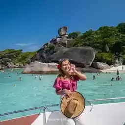 This time, P'Jean traveled with 𝗙𝗮𝗻𝘁𝗮𝘀𝘁𝗶𝗰 𝗦𝗶𝗺𝗶𝗹𝗮𝗻 𝗧𝗿𝗮𝘃𝗲𝗹. We started by having breakfast at a private pier. After getting ready to listen to some information, we sailed to Koh Paet. The highlight of this island is the Sail Rock. You can climb up to the viewpoint or walk along the beach and look up like P'Jean. It's just as beautiful. 😁