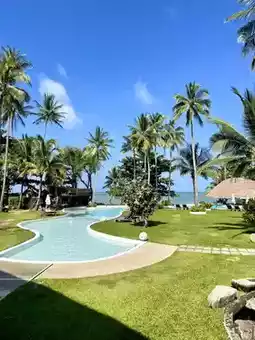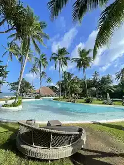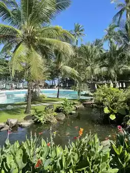 The room was absolutely gorgeous! Clean, beautiful, and with a great view, it felt like a luxurious beach resort. It's not a very long walk from the lobby to your room, but a golf cart will take you there. There are several room types to choose from, but we chose the Superior Palm View room. It's located in a building, and the room is spacious and well-equipped. They even lend you hats and woven bags for photo props. The day we visited, the rain had just stopped, and the weather was beautiful. However, the water wasn't very pleasant, with strong waves. There were red flags posted, so swimming in front of the beach wasn't a pleasant experience. The hotel's spacious grounds meant walking to breakfast or the beach was a bit far. The pool was beautiful, perfect for taking photos from every angle. There's also a restaurant and cafe on site. For those who don't feel like going out, this hotel offers a one-stop service.