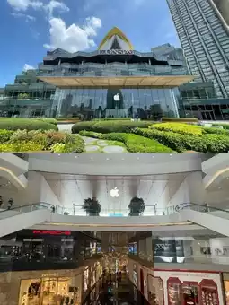 Icon Siam introduces Bangkok to duplex stores like Hermès, H&M, and COS, as well as the first Apple retail store and Siam Takashimaya department store. It even brings a traditional floating market indoors, offering a blend of shopping and tourism experiences. The mall's interior is spacious, with several high atriums and some areas exceeding ten meters in height, enabling the display of large art and commercial installations and multi-level storefront designs.