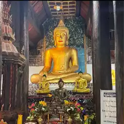 Inside the temple, there is a golden Buddha statue, which gives a strong sense of Thai culture.