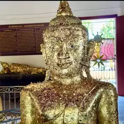 During my visit to Phuket, I explored various temples, and this one stood out with its stunning golden appearance. It was especially beautiful on a sunny day, making the experience even more enjoyable.