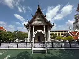The murals inside the main hall are interesting, depicting famous temples like Wat Pho and Wat Phra Kaew, as well as amulets.