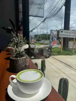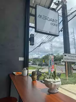 MERSAINT CAFE is a cute cafe located on a main road in Thalang District, Phuket Province. This lovely loft-style cafe features exposed concrete and a comfortable, open atmosphere, perfect for those who enjoy chilling out and café-hopping. The coffee here is absolutely delicious, and the green tea is also delicious. If you're passing through Phuket or Thalang District, stop by and enjoy the cool air conditioning.