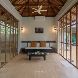 Each villa is designed for privacy, with a bedroom, living room, small kitchen, and private pool. Perfect for couples, families, or groups of friends.