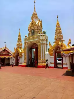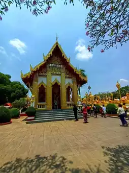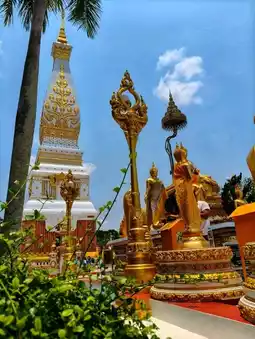 Enjoy the beauty of Phra That Phanom Borom Chedi, a sacred chedi for Thais. It houses the Buddha's breast relic, a sacred chedi for those born on Sunday. The chedi is a dazzling white and brass chedi, strikingly visible from afar, standing 57.5 meters tall.