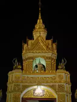 The temple’s iconic 57-meter-tall Laotian-style chedi, adorned with 110 kilograms of gold, has undergone several reconstructions. The most recent rebuild occurred after the chedi collapsed during a storm in 1975. It was restored with national support and now stands as a symbol of faith and resilience.