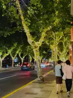 One of the most enchanting experiences in Shanghai is a night stroll along tree-lined avenues like Huaihai Road or Nanjing West Road. Twinkling fairy lights wrap around the trunks and branches, creating a romantic, cinematic atmosphere. Whether you’re walking alone or with company, the streets feel safe and alive with charm.