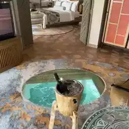 The architecture blends boho-chic elements like dreamcatchers, bright textiles, and curved lines to create a relaxed, inviting atmosphere. Villas feature glass-bottom living rooms, generous outdoor decks with plunge pools, and seamless indoor-outdoor transitions.