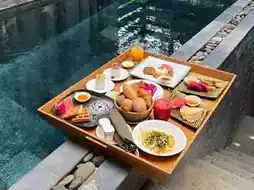 🍳 Breakfast Experience: Hearty and diverse breakfast spread served on the pool in your villa