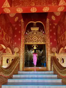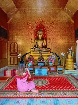 Wat Phiphat Mongkhon is an important temple that is outstanding in both history and architecture. Wat Phiphat Mongkhon was originally an abandoned temple in the middle of a rice field. It is estimated to be about 700 years old. Here, there is a glass house church, which is an intricately decorated church with Lanna art. There is a Lanna temple that clearly reflects Lanna art. There is also a golden Buddha statue (Phra Phuttha Sukhopothong), which is a pure gold Buddha statue weighing 9 kilograms and is about 500 years old.
