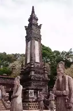 Born Nguyen Phuc Buu Dao, Khai Dinh (ruled 1916-25) was the second-last Emperor in the Nguyen Dynasty. He was the son of Emperor Dong Khanh. Dong Khanh was the most submissive of the Nguyen Emperors to French colonialism. After the French expelled the patriotic Emperor Duy Tan, they chose the son of Emperor Dong Khanh to be the nominal ruler of Vietnam. As such, Khai Dinh’s was a puppet government for the French. As a puppet for the French, Khai Dinh’s government suppressed the Vietnamese’ resistance movements against colonial rule. There was, indeed, lots of ill will toward Khai Dinh from the people of Vietnam.