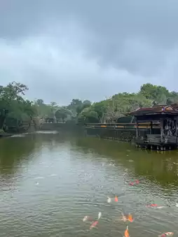 When I visited the Tomb of Emperor Tu Duc on a rainy day, the serene atmosphere deepened even more. I took an umbrella and looked around the tomb. Although I fell on the slippery road, it was a good walk. When visiting this place on a rainy day, make sure to wear comfortable shoes so that you don't slip!