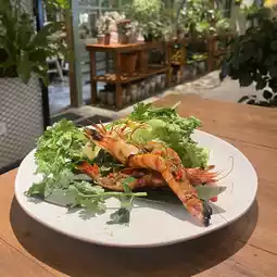 This time, we tried the grain-fed Angus steak. The beef flavor was mild, and while the texture was tender, it felt slightly dry—overall, an average experience. We also had the garlic butter pan-fried black tiger prawns. The prawns were cooked with a delightful aroma, but the portion was small—58 RMB for two prawns, which is relatively expensive for local standards.