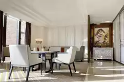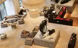 The "Chapter" lobby lounge at Conrad Tianjin is arguably the most spacious and expansive among Tianjin's hotels. Its modern, elegant, and luxurious design features floor-to-ceiling windows that allow natural light to flood the interior, while several crystal chandeliers overhead add a touch of sparkle and grace.